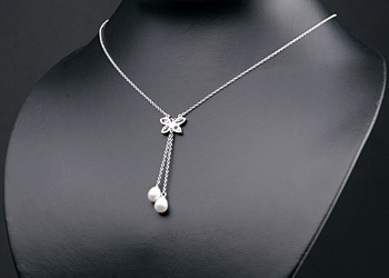 Silberkette Collier (925) Schmetterling+Perlen P349 weiß